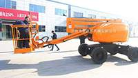 柴油自行曲臂升降平臺在使用過程中的注意事項 1、在使用前首先檢查升降機的變速箱、齒輪箱、油箱、銷套潤滑油、各個油位是否加足。 2、啟動柴油機按正常機動車行駛標準進行駕駛。 3、升降作業之前,應首先打開支腿,具體步驟是:請按照操作指示牌操作支腿,使整機..